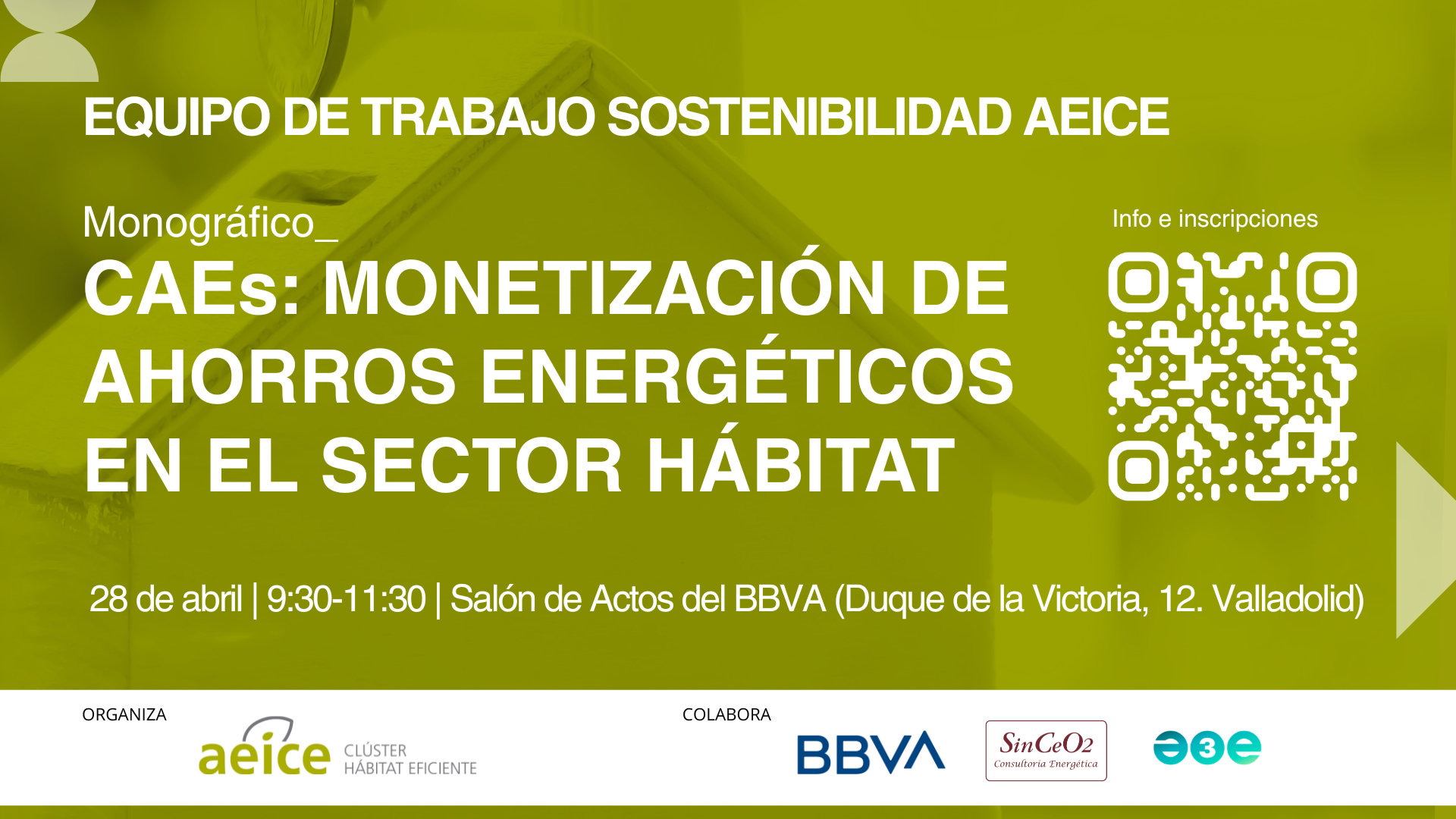 El próximo 28 de abril, nuestro Colegio participará activamente en la sesión monográfica organizada por AEICE, centrada en los Certificados de Ahorro Energético (CAEs) y la monetización de ahorros en el sector hábitat.