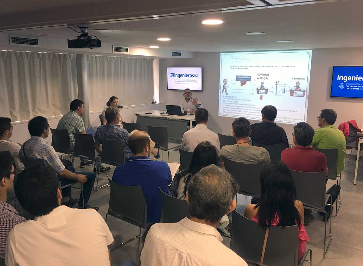 Miriam Conde, Jefa de Servicio de Reglamentación y Seguridad Industrial de la Dirección General de Industria de la Junta de Castilla y León y Marceliano Herrero, Jefe de Servicio de Industria de Valladolid, impartieron una interesante charla en la que explicaron el origen y filosofía que subyace en el procedimiento para controlar la labor de proyectistas, directores de obra e instaladores establecido mediante la Instrucción “Sobre Control Reglamentario de la Documentación Técnica de Instalaciones”, del 7-3-2017.