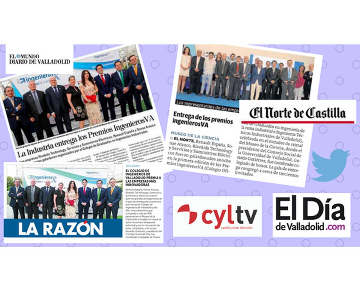 Con respecto a la prensa escrita se han hecho eco de los Premios ingenierosVA de la Industria El Norte de Castilla, El Mundo Diario de Valladolid y La Razón Castilla y León, todos en la edición también del 16 de junio. Este fin de semana El Día de Valladolid realizará una amplia cobertura del evento y estará disponible en los quioscos de la ciudad tanto el sábado como el domingo, un recuerdo impreso de una gala especial e inolvidable. Además, a través del ‘hastag’ #PremiosingenierosVA cientos han sido los mensajes de agradecimiento y de seguimiento a lo largo del evento que han comentado todo lo referente a la celebración de los Premios. Sin duda un motivo para estar orgullosos de una profesión, de los colegiados y de la repercusión que la sociedad ha recibido con los brazos abiertos. |