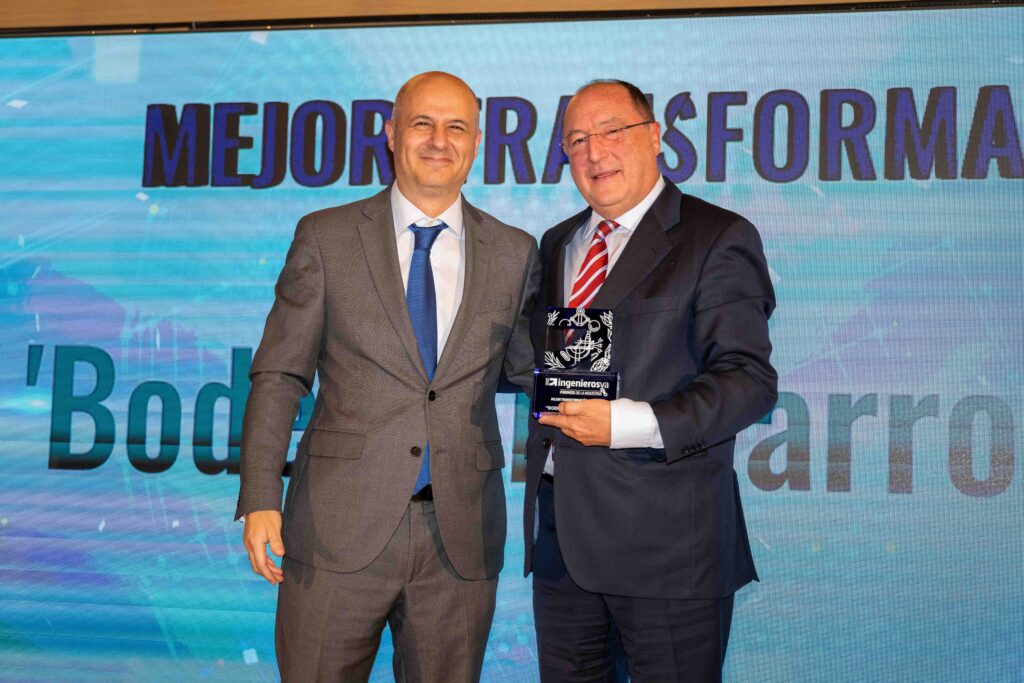Bodegas Familiares Matarromera fue la siguiente empresa en subir al escenario para recibir el premio en la categoría de ‘Mejor Transformación Digital de la Industria’. Carlos Moro, Presidente de la bodega, fue el encargado de recoger el galardón de manos del Viceconsejero de Transformación Digital de la Junta de Castilla y León, Jorge Llorente.