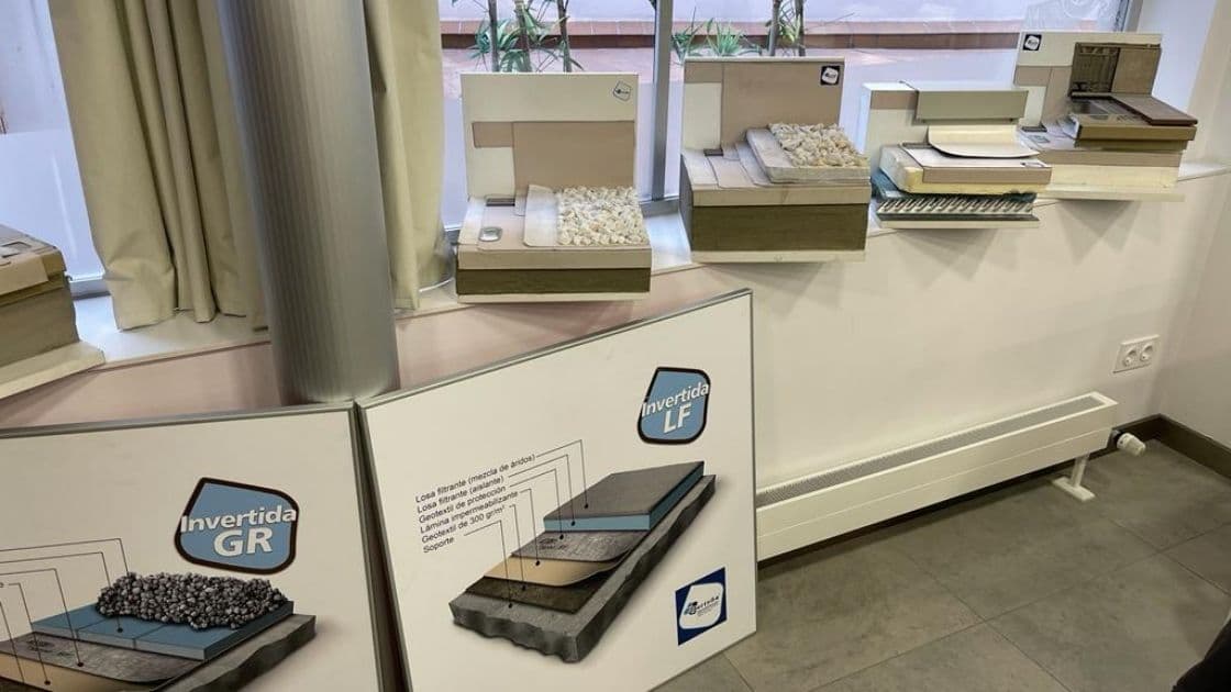 Para finalizar se llevó a cabo la demostración de anclaje de paneles solares sin perforación en cubierta. Un sistema que combina las láminas con capas de protección geotextil, barreras de vapor y aislantes. Existen láminas de elevada reflectancia a los rayos solares que combinadas con aislamiento térmico añaden una elevada eficiencia energética a la impermeabilización.